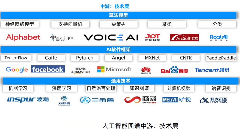 人工智能财产链次要分为根本层、手艺层和使用层。机械进修专注于算法,